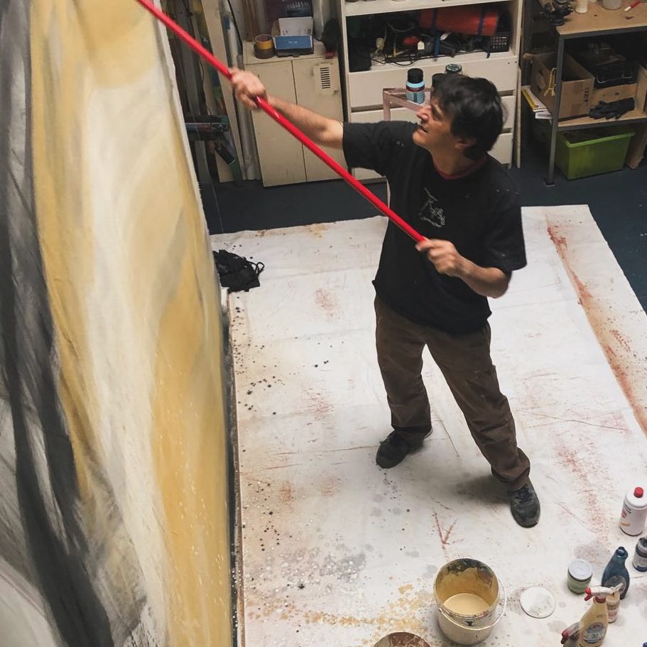 Teatro e un artista capace di vivere più generazioni dell'arte di strada, lavora con situazioni ed estetiche diverse: writer, illustratore, scenografo, agitatore culturale. Non ha mai smesso di trasformarsi e sperimentare. Le sue tele recenti continuano un dialogo serrato con la città, iniziato in quei primi anni '80 della Milano antagonista. Una città che, da spazio fisico di lotta politica, diventa entità vivente, testimone delle vicende umane e non umane che in essa si svolgono. Materia utile a trascendere, matura qualsiasi limite di analisi e argomentazione. Fulcro delle opere sono i grandi temi irrisolti e interconnessi trattati dall’artista: l’estinzione biologica, migrazioni, guerre, consumo di suolo, mutamenti climatici. Paesaggi urbani distopici, paesaggi allagati e anche opere tridimensionali, da sempre caratterizzano l’artista. I soggetti sono spesso essenziali, a volte puramente simbolici e anche ironici; talvolta minuziosamente elaborati con certosino dettaglio. Teatro lavora parallelamente come costruttore di scenografie, grandi installazioni artistiche, decorazioni murali in tutto il mondo.